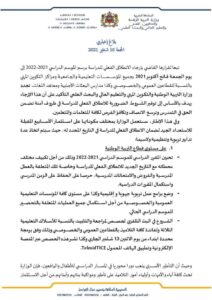 اخبار وطنية وزارة التربية الوطنية تضع الخطوط العريضة للدخول المدرسي 2022/2021 safimohit 11 سبتمبر, 2021 Spread the love Please follow and like us: Continue Reading Previous: تمديد أجل تسجيل الطلبة بالأحياء الجامعية.Next: كودار رئيس لجهة مراكش أسفي اترك تعليقاً إلغاء الردلن يتم نشر عنوان بريدك الإلكتروني. الحقول الإلزامية مشار إليها بـ *التعليق * الاسم * البريد الإلكتروني * الموقع الإلكتروني احفظ اسمي، بريدي الإلكتروني، والموقع الإلكتروني في هذا المتصفح لاستخدامها المرة المقبلة في تعليقي. مقالات ذات صلة قرار حكومي رسمي: تخفيض ساعات عمل حراس الأمن الخاص اخبار وطنية قرار حكومي رسمي: تخفيض ساعات عمل حراس الأمن الخاص 17 أبريل, 2026 لقاء البرازيل يؤكد مجددا إرهابية البوليساريو اخبار وطنية لقاء البرازيل يؤكد مجددا إرهابية البوليساريو 7 أبريل, 2026 المغرب بلد الشرفاء لا مكان للعاقين فيه اخبار وطنية المغرب بلد الشرفاء لا مكان للعاقين فيه 11 مارس, 2026
