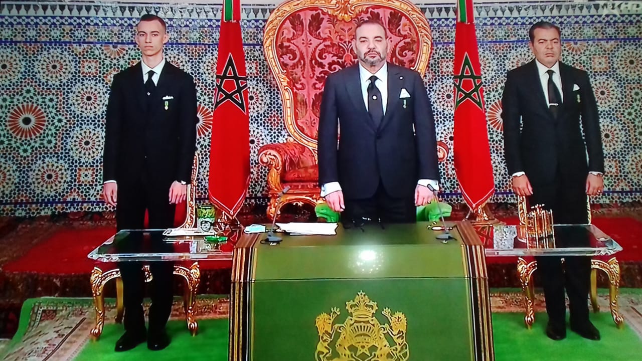 ونود في الختام، أن نوجه تحية إشادة وتقدير، لكل مكونات القوات المسلحة الملكية، والدرك الملكي، والأمن الوطني، والقوات المساعدة، والإدارة الترابية، والوقاية المدنية، على تجندهم الدائم، تحت قيادتنا، للدفاع عن وحدة الوطن، والحفاظ على أمنه واستقراره.