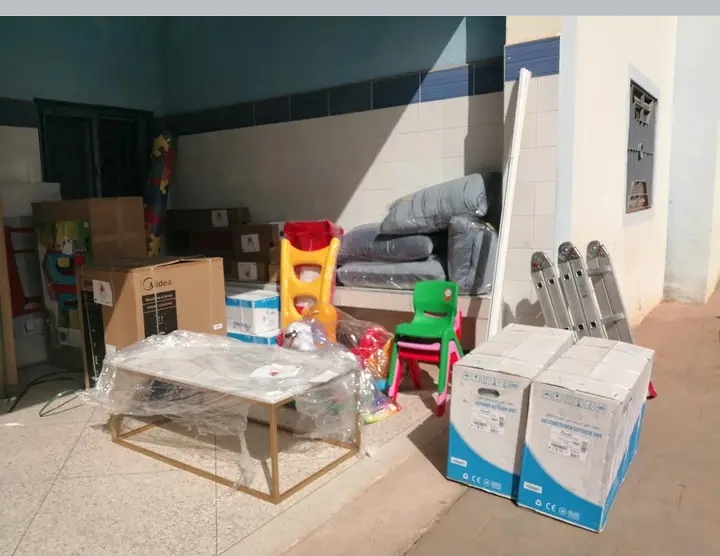 وتتكون المعدات من مكيفين من سعة 12000، و آلة للتصبين ، وجهاز تلفاز خصص لقاعة الانتظار، فضلا عن حاسوب محمول، إلى جانب جهاز المسح الضوئي، وأريكتين، بالإضافة لتجهيز فضاء للعب خاص بالأطفال.
