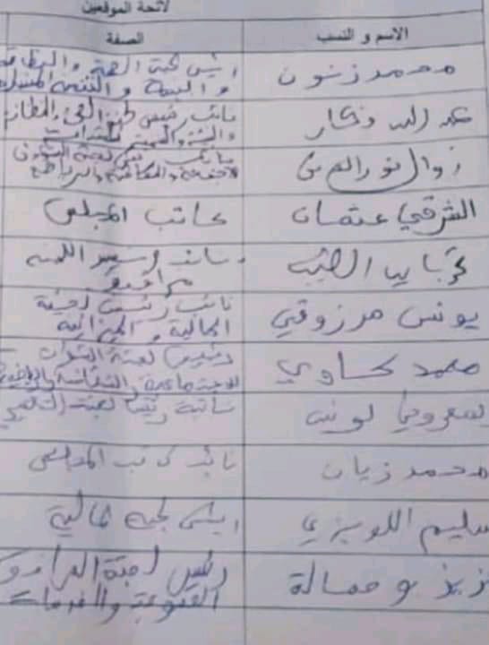 و فيما يلي نسخة البيان ولائحة التوقيعات: