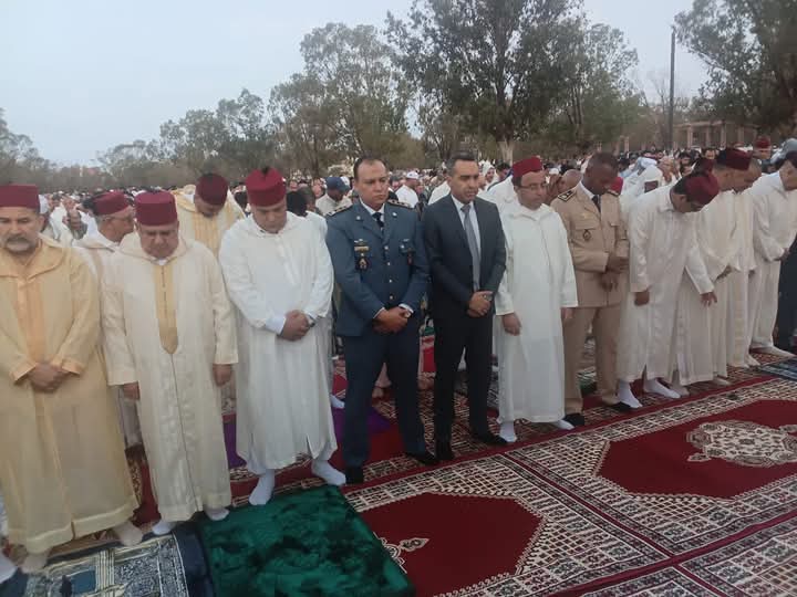 وحضر صلاة عيد الفطر إلى جانب عامل الإقليم كل من الكاتب العام للعمالة ورئيس المحكمة الإبتدائية ووكيل الملك بها ورئيس المجلس الإقليمي و رئيس المجلس الجماعي والسادة البرلمانيون والقائد الإقليمي للدرك الملكي ورئيس المنطقة الإقليمية للأمن الوطني والقائد الإقليمي للقوات المساعدة والقائد الإقليمي للوقاية المدنية ورؤساء المصالح الخارجية .